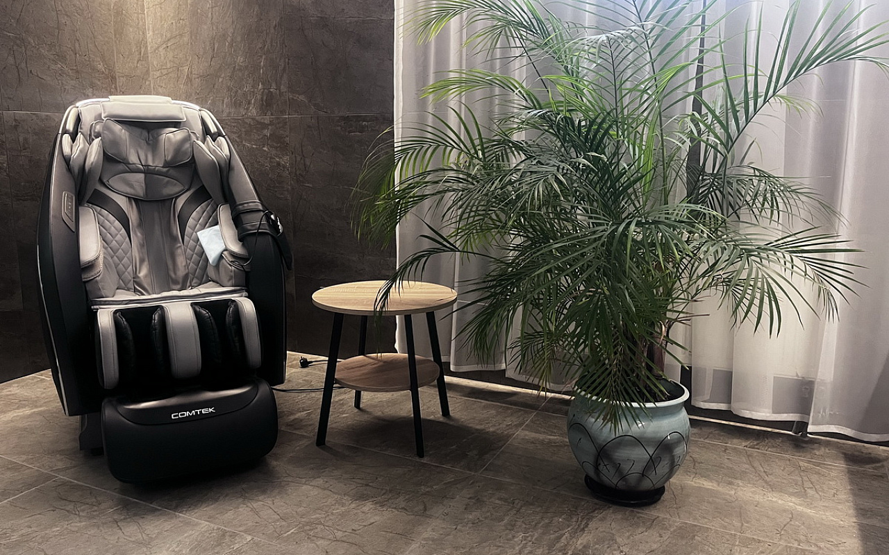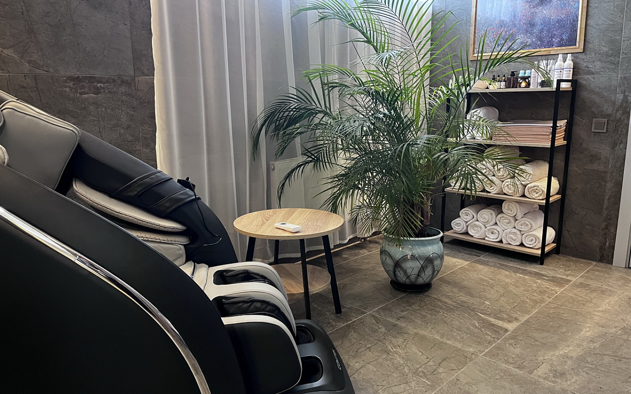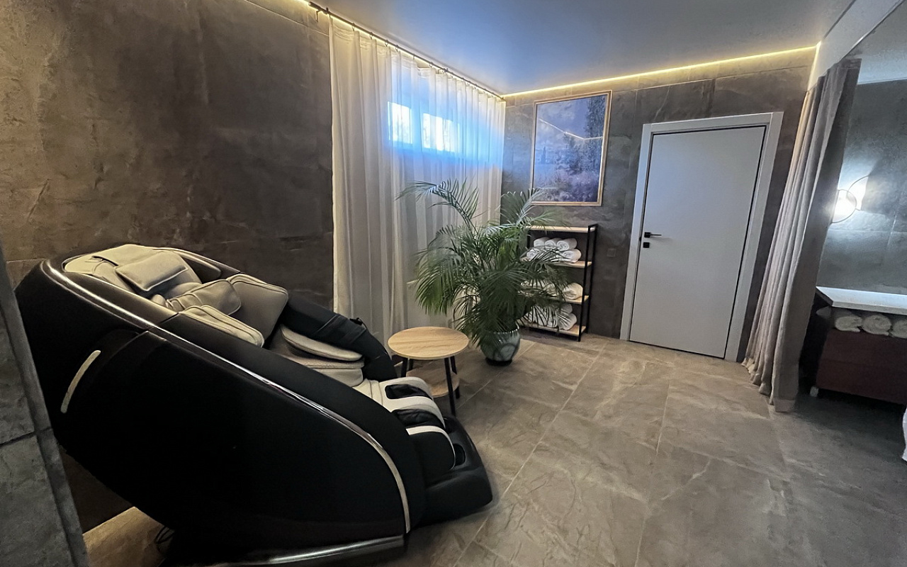 Наша зона с массажным креслом предлагает вам удобство и комфорт. Вы сможете самостоятельно выбрать один из множества режимов, чтобы быстро снять напряжение и расслабить мышцы в любое время.