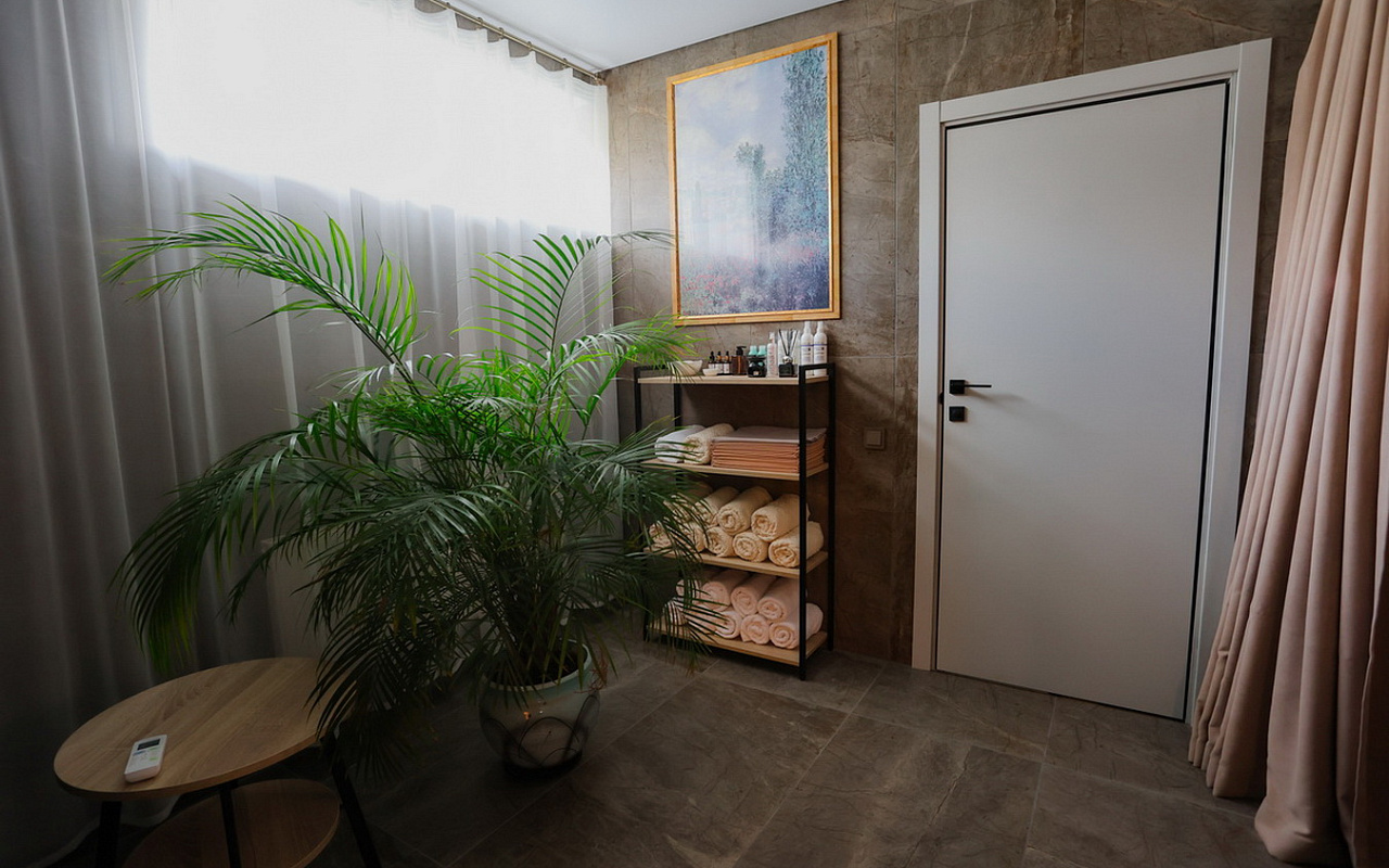 Наш спа-кабинет создан для вашего комфорта и глубокой релаксации. В интерьере преобладают теплые, успокаивающие оттенки, возможность насладиться ароматерапией. Каждая деталь этого пространства продумана для того, чтобы вы могли полностью погрузиться в мир наслаждения и заботы о себе.