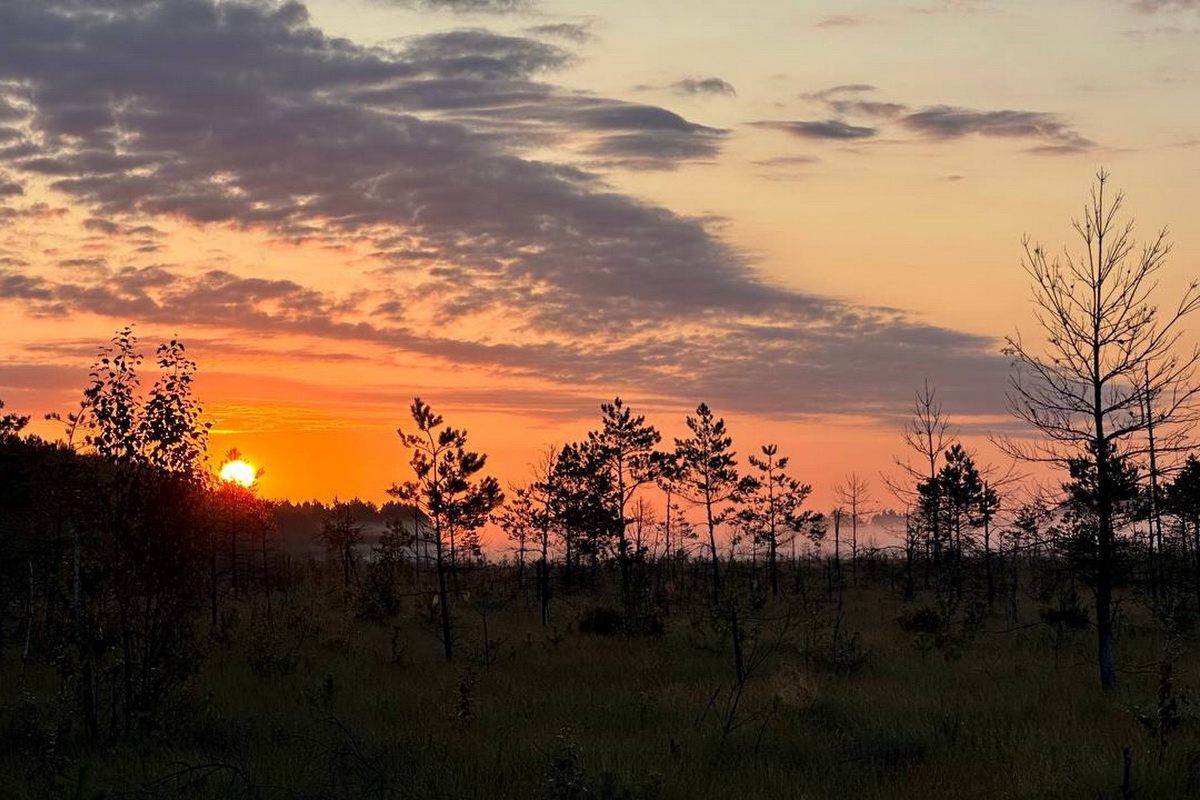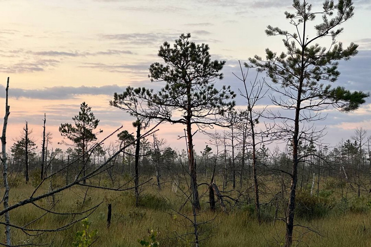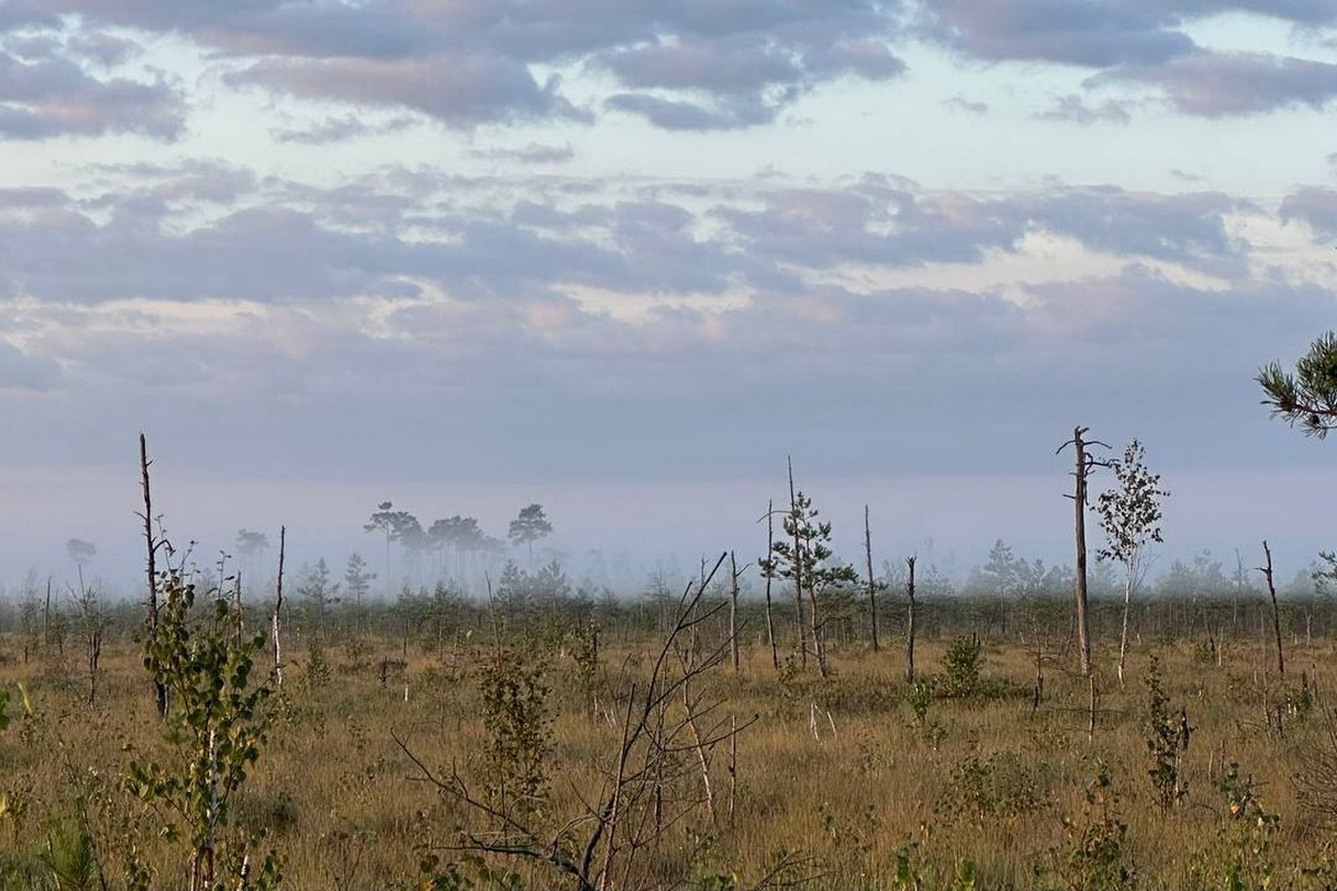 Мы отправимся на типичное верховое болото, где будем гулять по высоким и узким островам - песчаным дюнам и любоваться с их высоты бескрайним верховым болотом. Переходя с дюны на дюну, почувствуете, как утопают ноги во мху, как волнуется под ногами земля, увидите, как растет клюква и пушица.