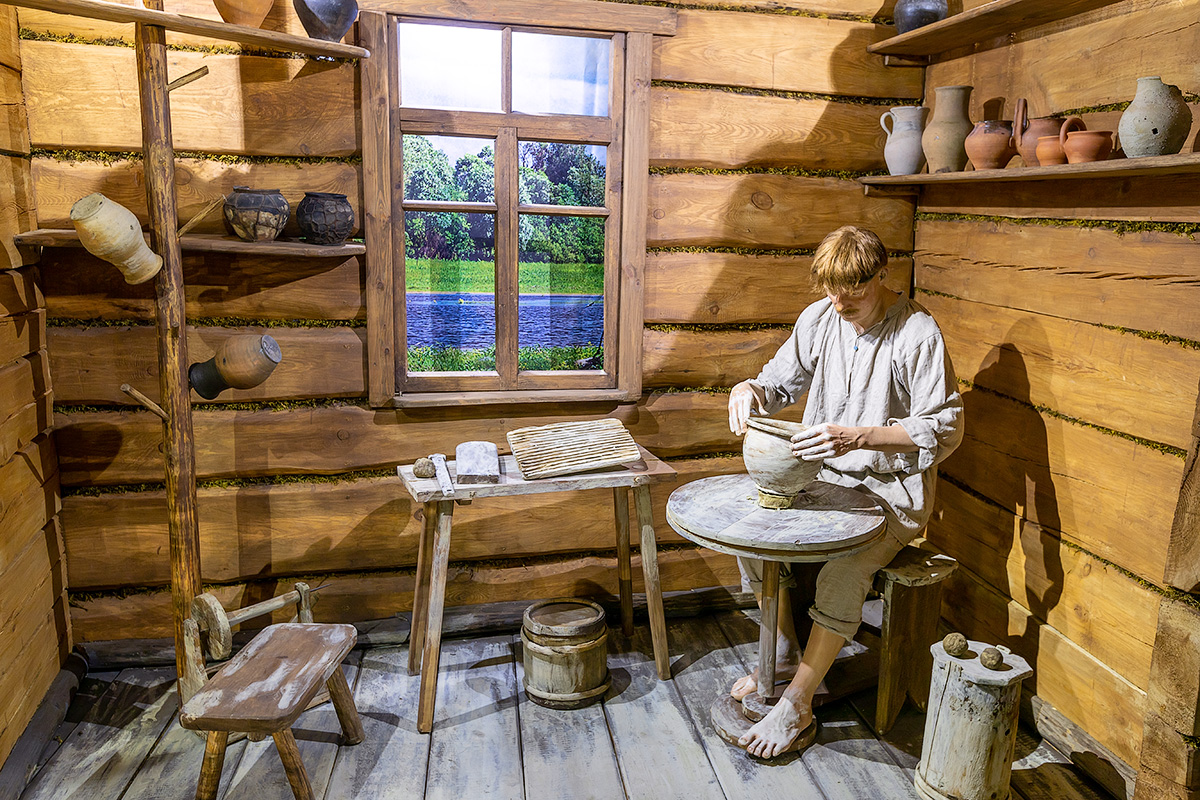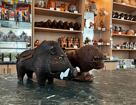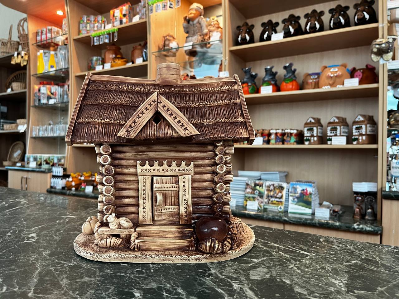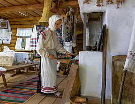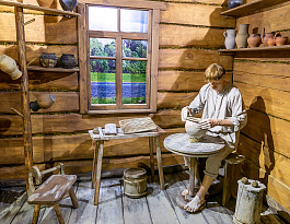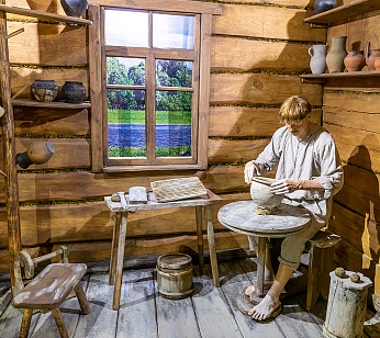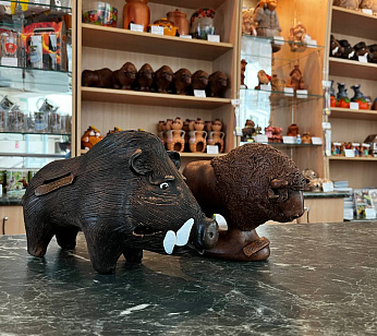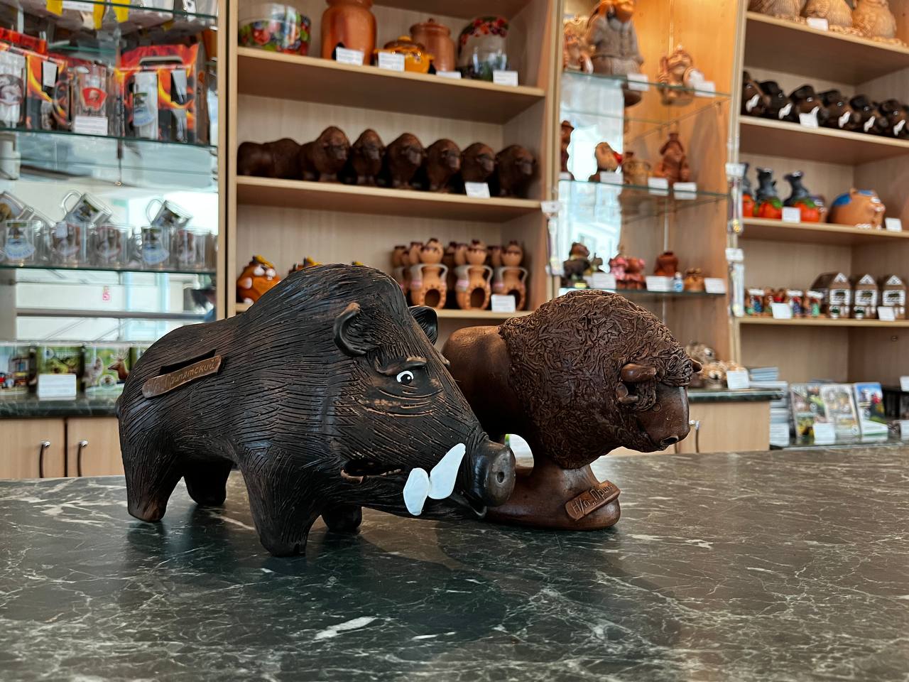 В магазине сувениров для услуг туристов изделия белорусских мастеров из льна, керамики, соломки, лозы.