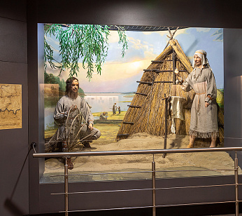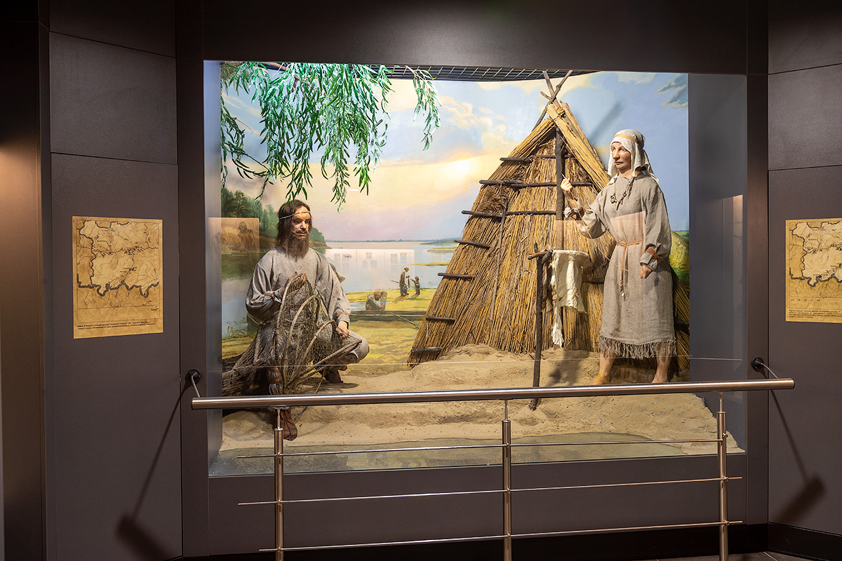 Зал археологии. На стендах – археологические находки из припятских городищ. Экспонаты рассказывают о первых людях, живших в этой местности, их обычаях.