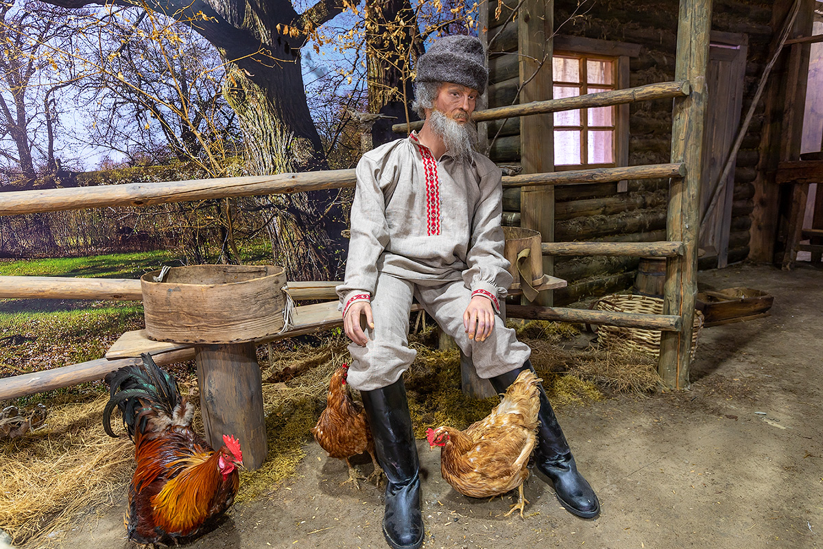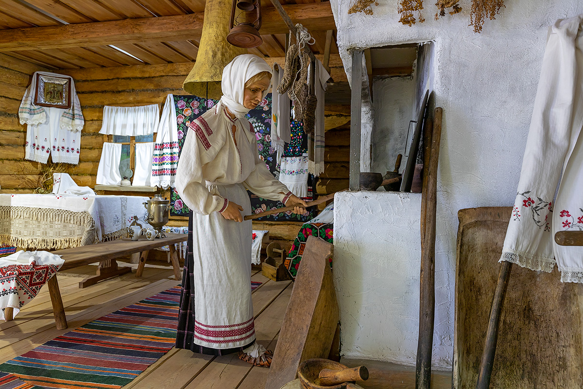 Зал этнографии. Основа экспозиции – имитация типичного жилища полешука в XIX веке. Здесь находятся аутентичные бытовые предметы: прялка, рыболовные снасти, ковры с вышивкой, кузнечные приспособления и т.д. Представлены также экспозиции, посвященные бортничеству и охоте.