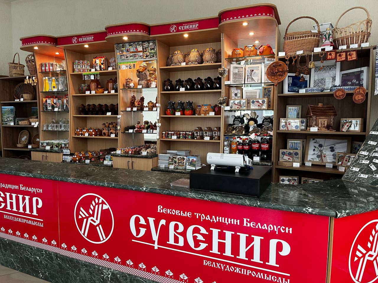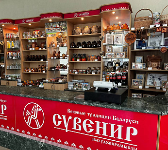 В магазине сувениров туристы могут приобрести изделия белорусских мастеров изо льна, керамики, соломки, лозы.